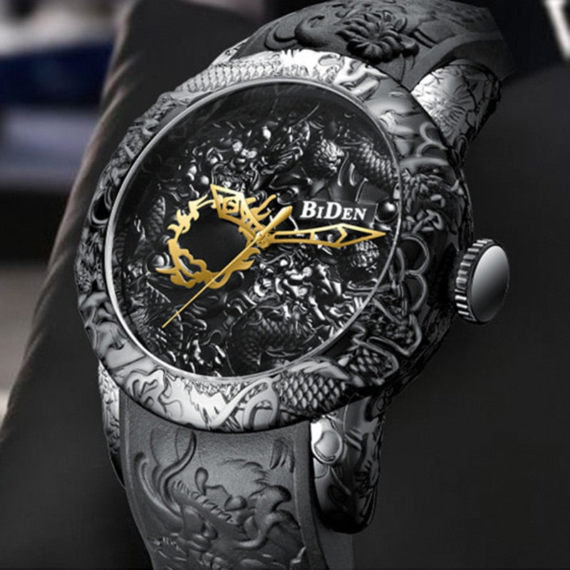 BIDEN Men Watches 3D Sculpture Dragon Creative Men Watches